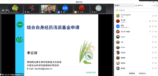 李云河研究员的报告开门见山,首先强调了申报国家自然科学基金基础研究和应用基础研究人员的必修课,也是科研能力提升的必要过程,特别是对青年科研工作者来说尤为重要。随后,李云河研究员重点结合自己的科研工作和基金申报经历,深入浅出地介绍了如何寻找具有创新性的关键科学问题、科学问题的探索和预备试验、如何提出科学假设,关于如何确定研究内容和目标、如何制定研究方案和路线,李云河研究员也给出了很好的建议,并鼓励大家申报基金要有自信,而自信源于平时科研基础和构思的积累、凝练和升华。最后,李云河研究员分享了基金申报书的撰写技巧和注意事项,强调申报人要足够重视、早做打算、文献调研充分,撰写要简练精准、逻辑性强,要突出研究特色和创新性。李云河研究员的报告主旨明确、层次清晰、融会贯通、简明易懂。报告结束后,与会教师就自身基金申报的一些具体问题与李云河研究员进行了深入交流,纷纷表示受益匪浅、收获颇多,为自己的基金申报和今后的科研工作都提供了很好的帮助和指导。
