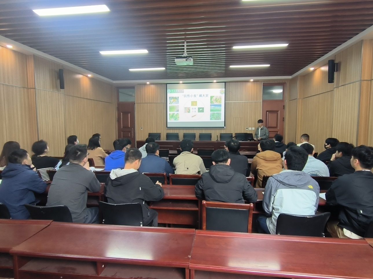 生物农药研发与花生病虫害防控团队王立老师为师生作学术报告,报告会由杨西发教授主持。