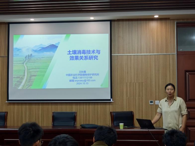 王秋霞以浅显易懂的方式阐述了土壤熏蒸剂在环境中的行为模式、应用机理、制剂及其作用机理,同时将土壤熏蒸形象地比喻为“土壤化疗”,巧妙地运用“优等生”、“全优生”和“特长生”等生动比喻,生动描绘了当前土壤熏蒸剂在防治方面的独到之处,极大地提升了学生们对土壤消毒技术知识的理解和认识。