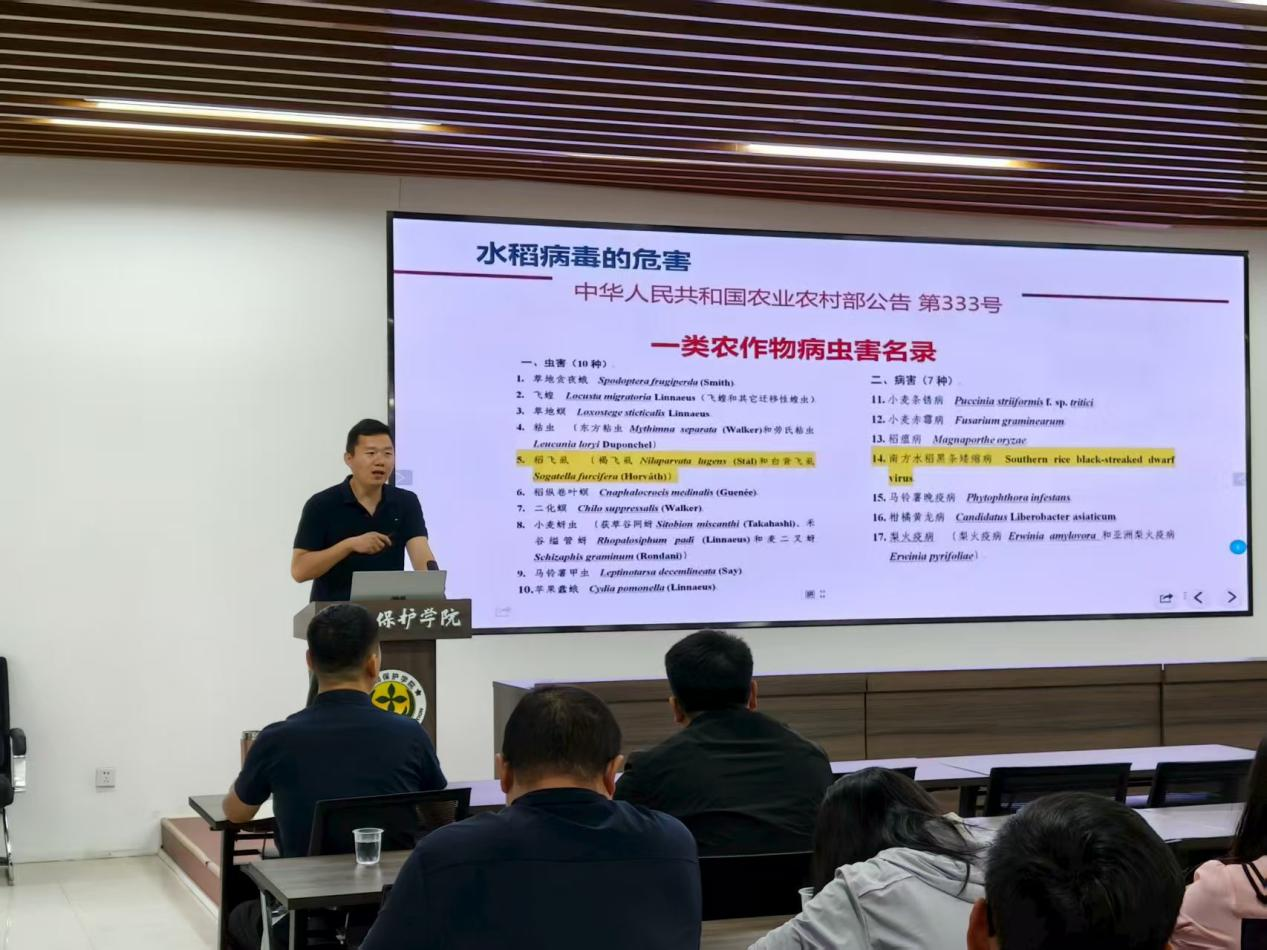 师生作以《水稻病毒致病共性机制解析与抗性材料创制》为主题的学术报告。学院教师代表、研究生代表参加本次学术报告,报告会由副院长安世恒主持。
