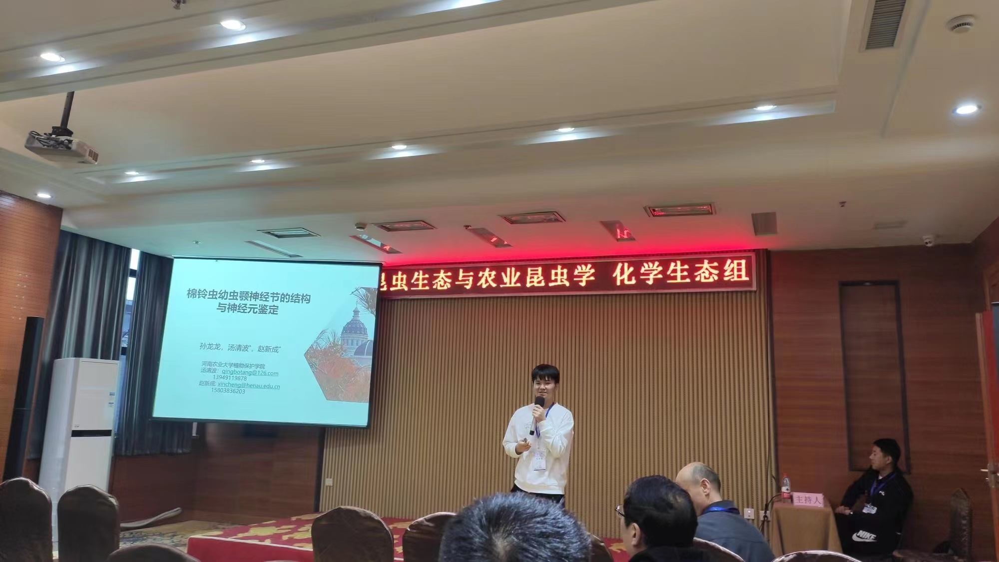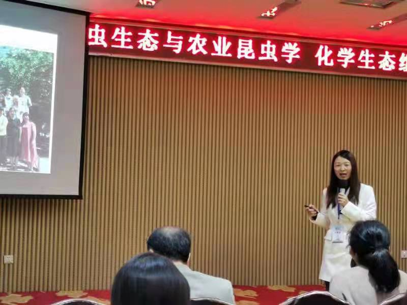 本次会议共设9个分会场。昆虫学系3名教师,2名研究生做了报告,闫凤鸣教授做了题为“植物-介体-病毒互作的化学生态学”的报告,魏纪珍副教授报告题目为“CAN在棉铃虫抵御Bt毒杀中的功能解析”,赵晨晨博士做了报告“共生菌介入下烟粉虱传CCYV能力变异机制”;博士研究生刘晓岚和孙龙龙分别做了“棉铃虫幼虫颚神经节的结构与神经元鉴定”和“雄性棉铃虫编码性信息素的神经通路”的报告。
