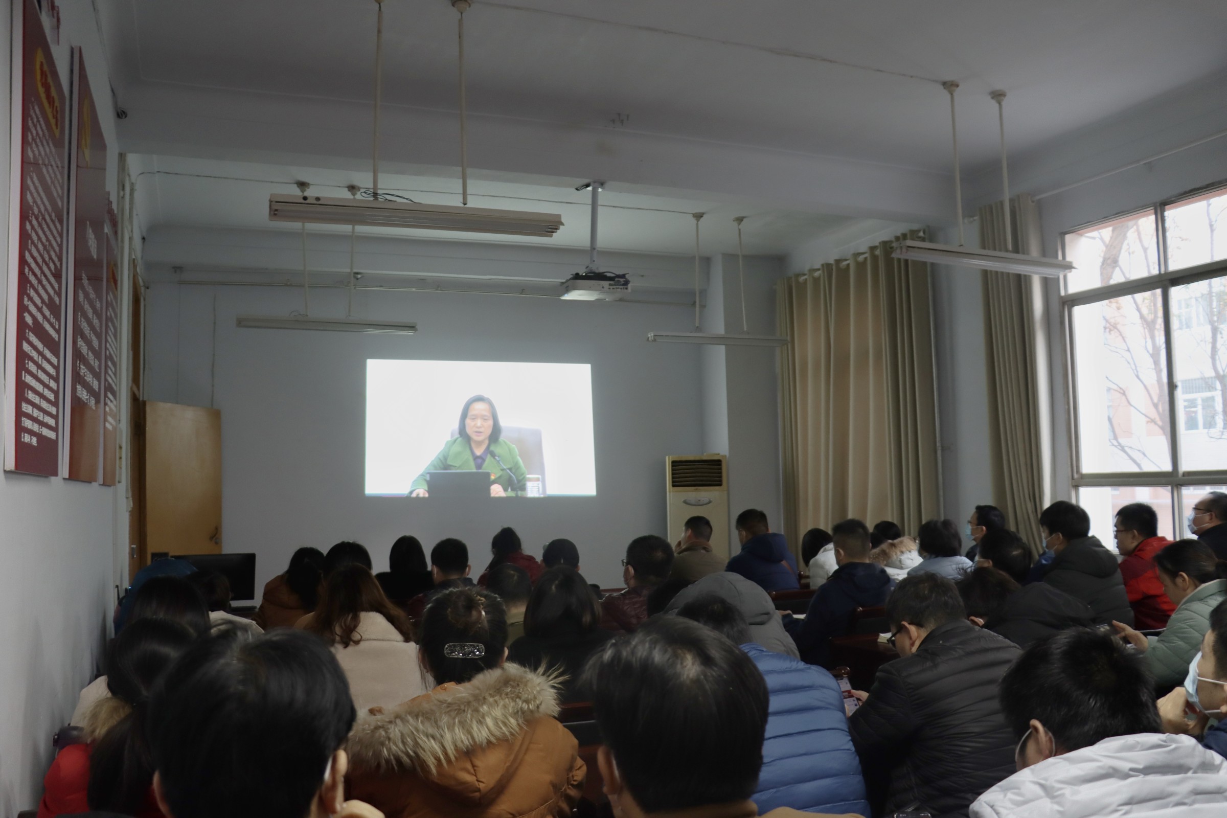 全体教职工、学生党员分别在文化路校区一号楼会议室、学术报告厅及图书馆报告厅通过线上直播聆听宣讲。
