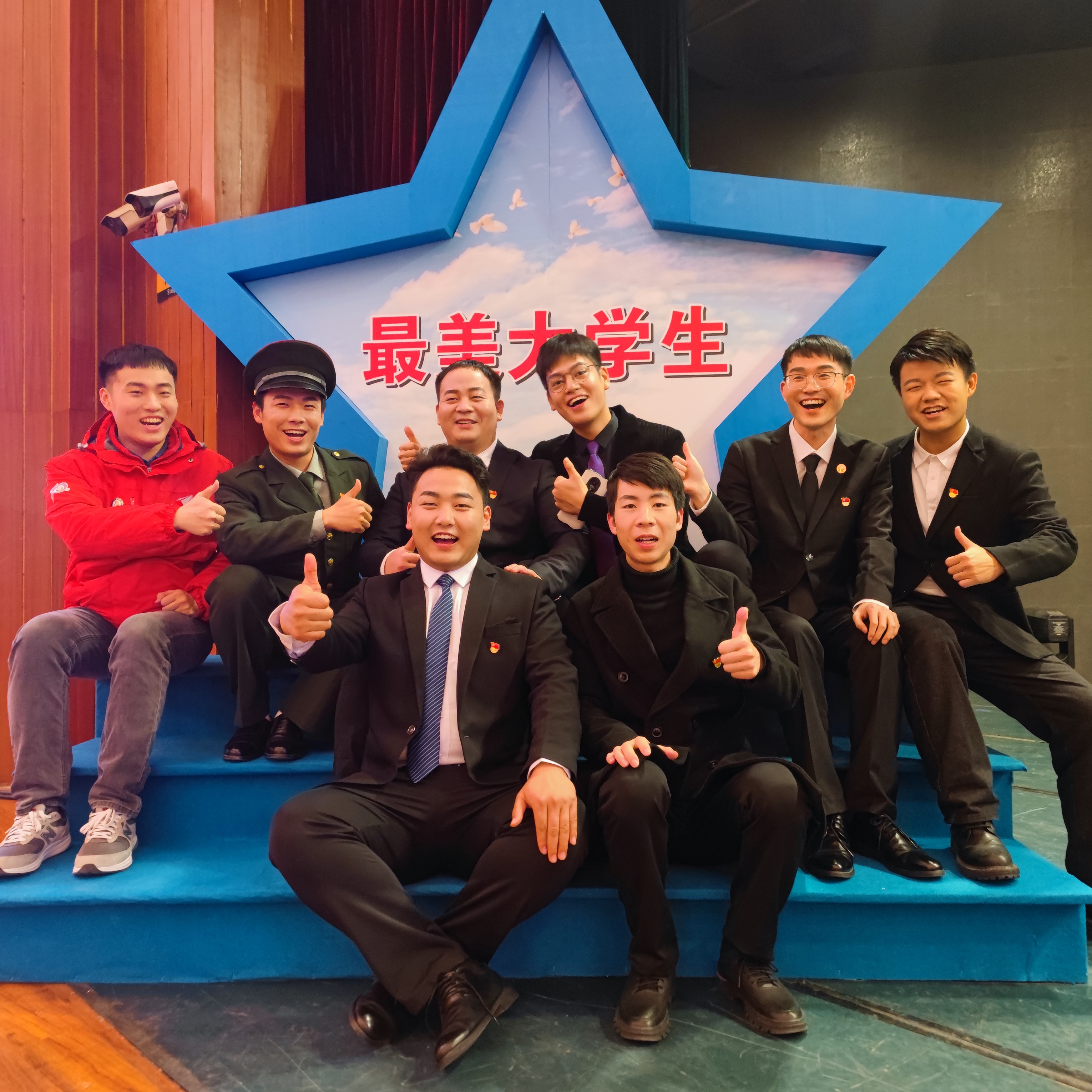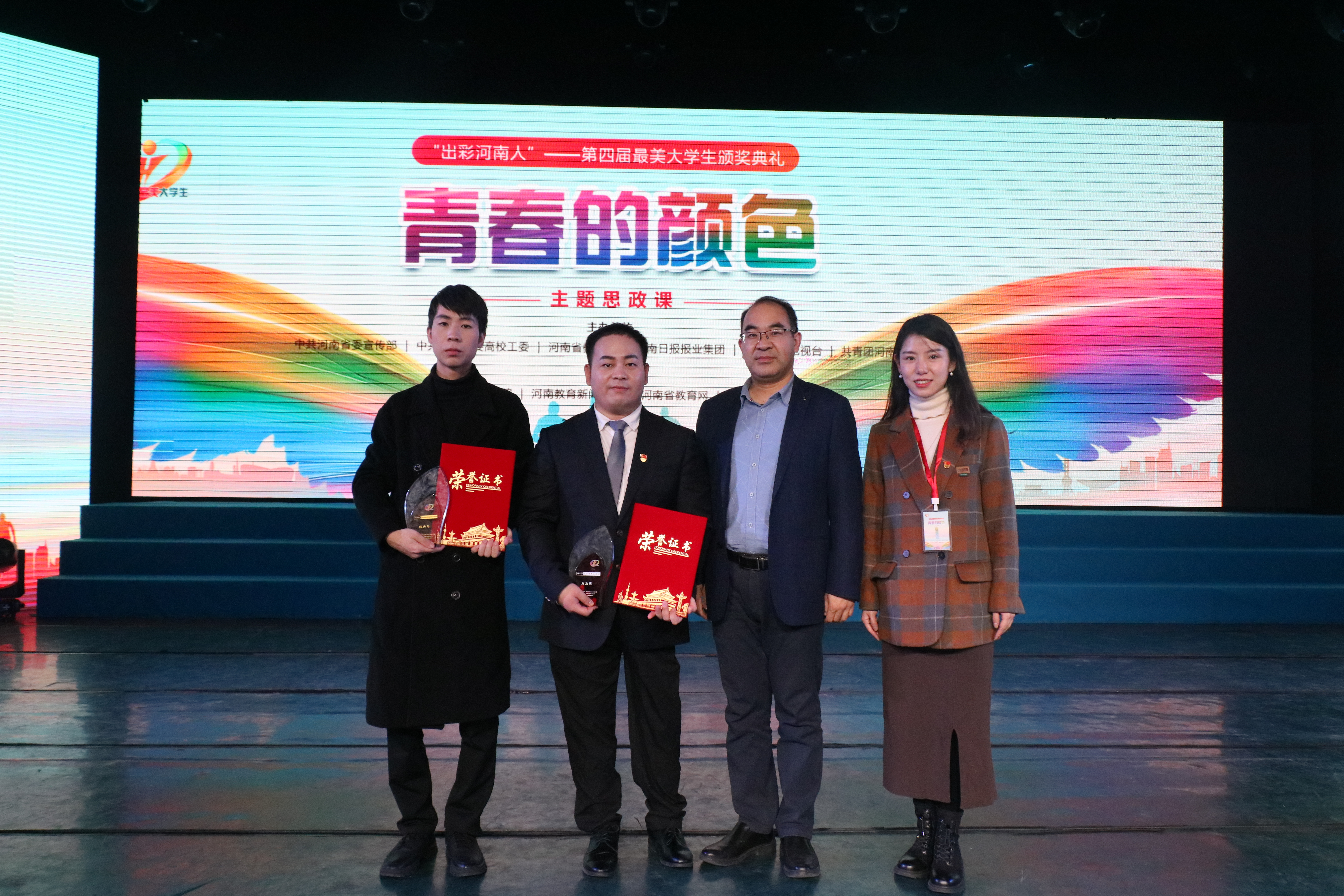 学工部副部长许世明、院团委副书记甄珍和马庆周合影留念