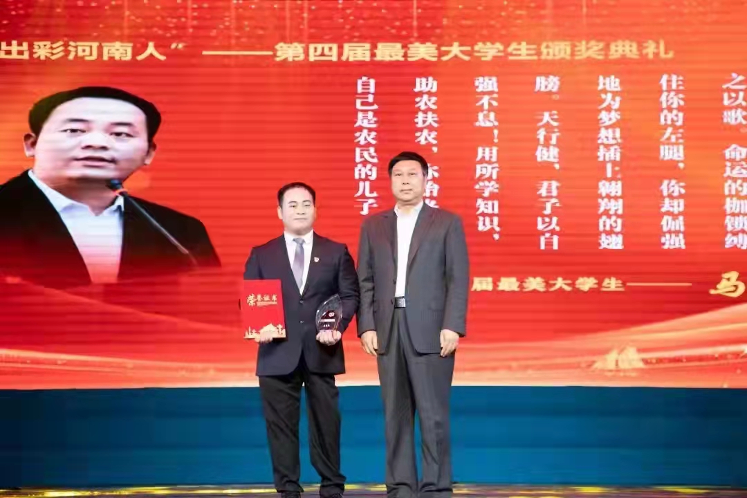 组委会给予马庆周这样的颁奖词:“世界以痛吻你,你却报之以歌,命运扼住了你的左腿,你却倔强地为梦想插上翱翔的翅膀。天行健,君子以自强不息!用所学知识助农扶农,你始终记得你是农民的儿子”。马庆周在接受主持人现场采访时说:“博士毕业以后,我还希望能用我自己所学的知识,向我校郭天财教授那样,扎根农村,帮助农民们过上好日子!” 他以“身残志坚、助农扶农”的感人事迹,用朴实无华、低调简单的语言感染着现场的每一个人,获得了经久不衰的雷鸣般的掌声。