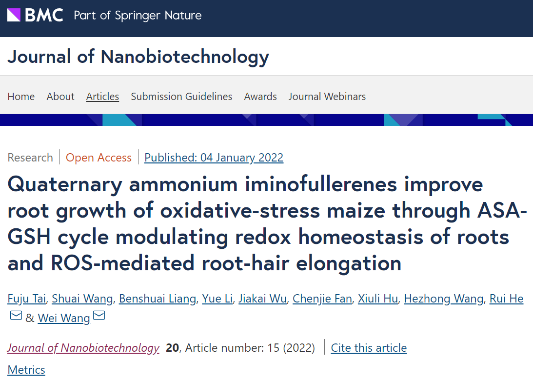 时尚该研究发现自主合成的阳离子型富勒烯水溶性衍生物(IFQA)作为新型碳纳米酶,具有体外抗氧化活性,可通过调控玉米NADPH氧化酶活性、根毛发育相关基因的表达水平,及根尖细胞抗氧化剂GSH 含量,平衡根尖ROS水平及细胞氧化还原状态,从而促进氧化胁迫下玉米根毛形成和根系生长。该研究首次报道碳纳米酶对氧化胁迫下玉米根毛发育的促进作用,这为IFQA作潜在的作物生长调节剂在生产中应用提供了依据(图1)。时尚该研究以题为“Quaternary ammonium iminofullerenes improve root growth of oxidative-stress maize through ASA-GSH cycle modulating redox homeostasis of roots and ROS-mediated root-hair elongation”的论文形式在线发表于国际知名期刊Journal of Nanobiotechnology(纳米生物技术杂志),该期刊(JCR一区,影响因子10.435)主要刊登医学和生物学领域的科技进展,尤其强调与纳米科学的交叉研究。这是继IFQA调节玉米干旱胁迫下萌发及根系生长机制研究(PPB, 2021;JAFC, 2019)后的又一成果。我校生命学院邰付菊副教授为论文第一作者,硕士生王帅为共同第一作者,王伟教授和性爱视频 何睿副教授为共同通讯作者。该研究得到了国家自然科学基金((U1904107)、河南省自然科学基金(212300410354)、河南省科技攻关项目(202102110070)、性爱视频 科技创新基金(KJCX2020C02)、中科院纳米生物效应与安全性重点实验室开放课题(NSKF201907)的资助。