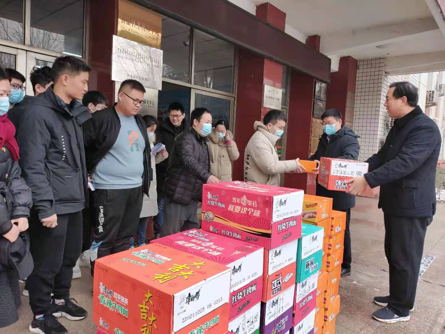 座谈会后还为同学们发放了春节慰问品。留校学生表示感谢,并把祝愿也送给学院领导老师。