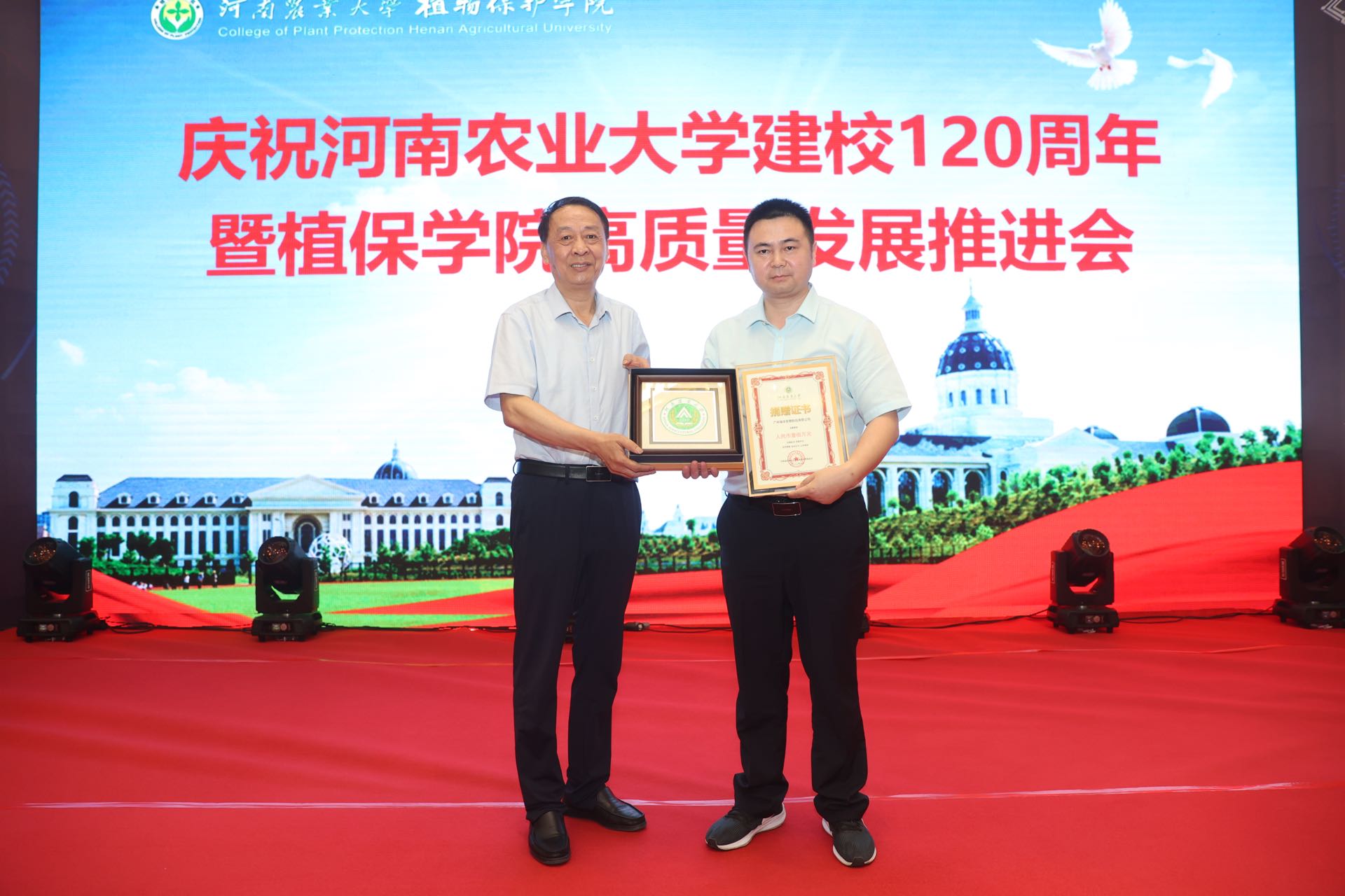 2002级校友、广州瑞丰生物科技有限公司李慎磊董事长向学校捐赠100万元,尹新明副校长代表学校接受了捐赠,魏蒙关书记向李慎磊颁发了捐赠证书及纪念校徽。李慎磊校友也表达了对母校的感谢及祝福.