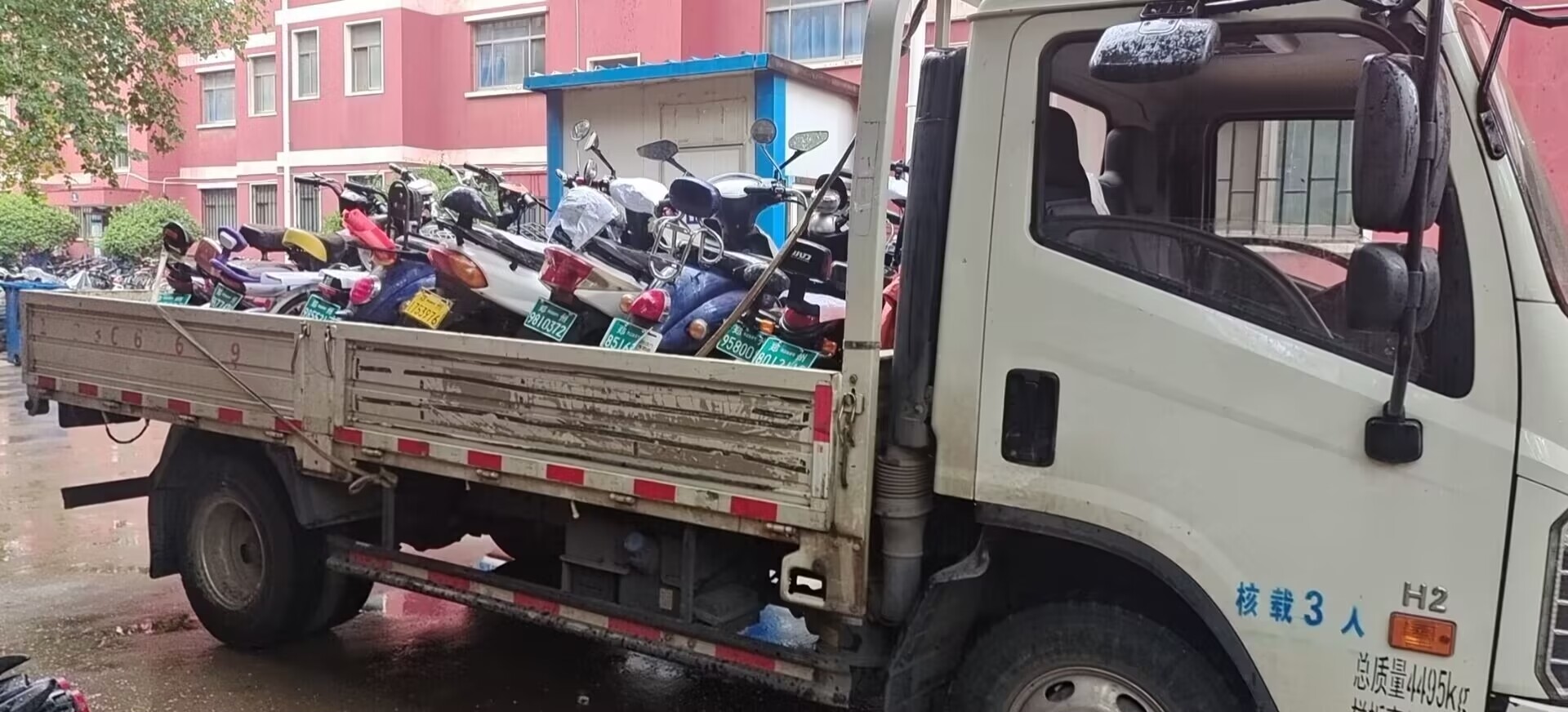 给学生分发储物袋并安排车辆帮助学生运送电动车和行李。