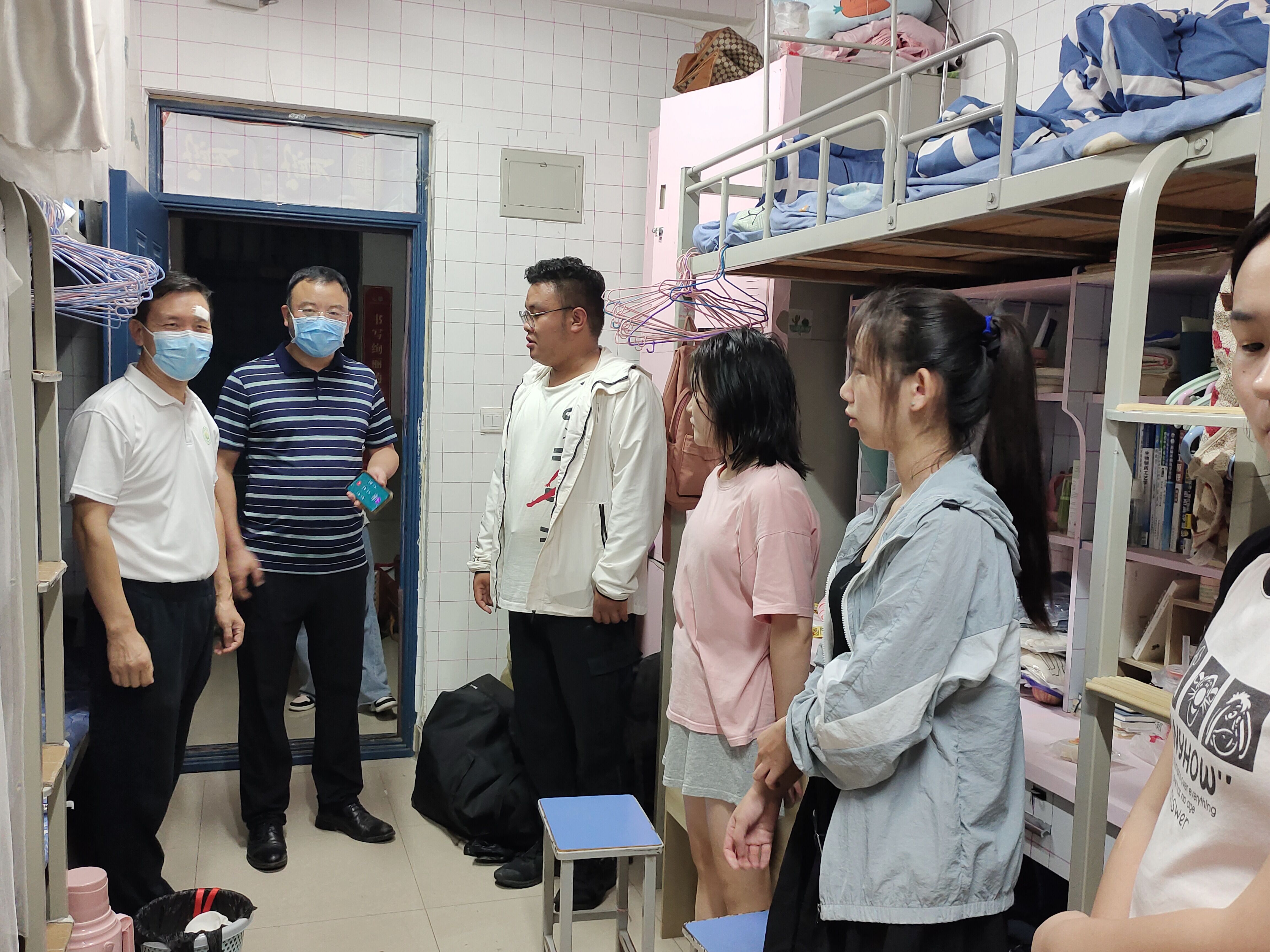 当天晚上,院党委书记李兴道、院党委副书记鲁兴、院研究生负责人常世鹏老师,院教学秘书孙炳剑老师和院团委王赟飞老师一行到20级学生宿舍和研究生宿舍。了解学生的搬迁安顿情况,提醒学生要注意安全,切实解决学生问题,为学生们送上中秋祝福。
