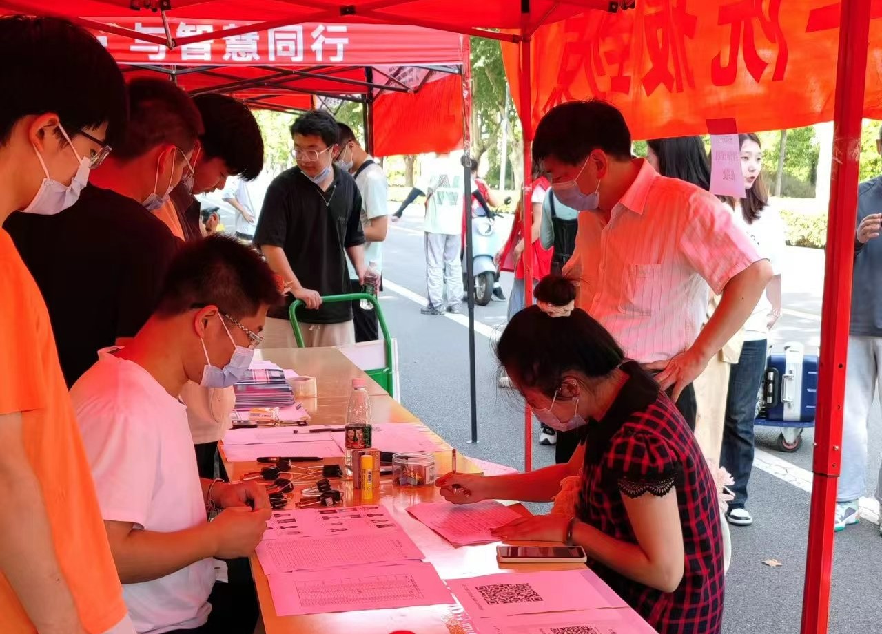 老师和学生干部以及迎新志愿者们,早早地来到了龙子湖校区及桃李园学生公寓新生报到处进行迎新准备工作,迎接从五湖四海而来,带着对未来的憧憬的22级新生们。