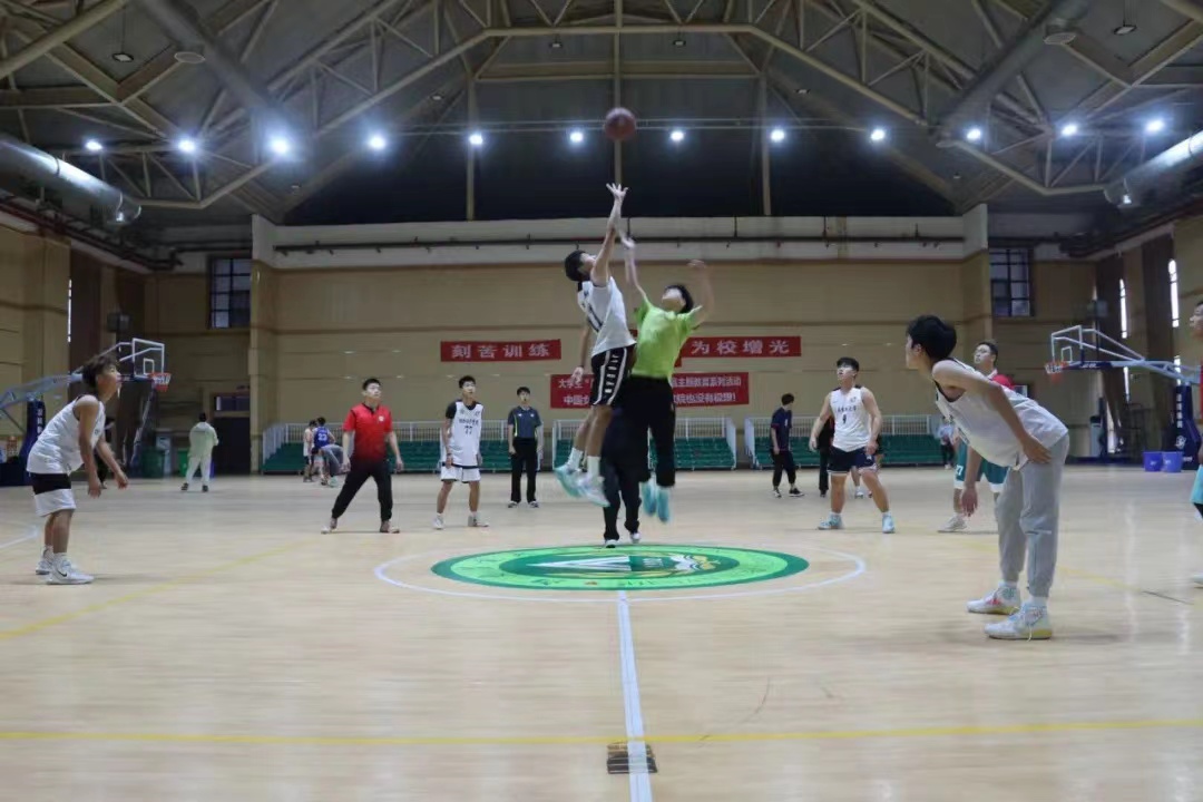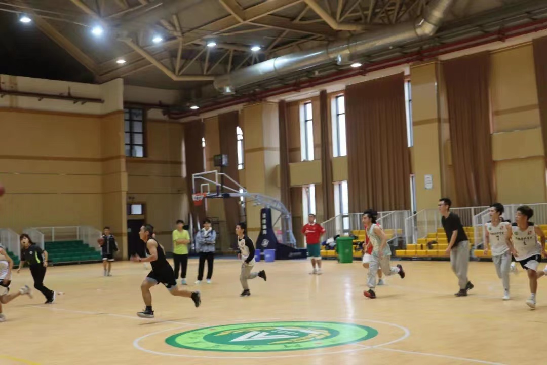 教职工篮球队进行了篮球友谊赛,老师们凭借默契的配合和多次的前场篮板以微弱的优势赢下了这场比赛。
