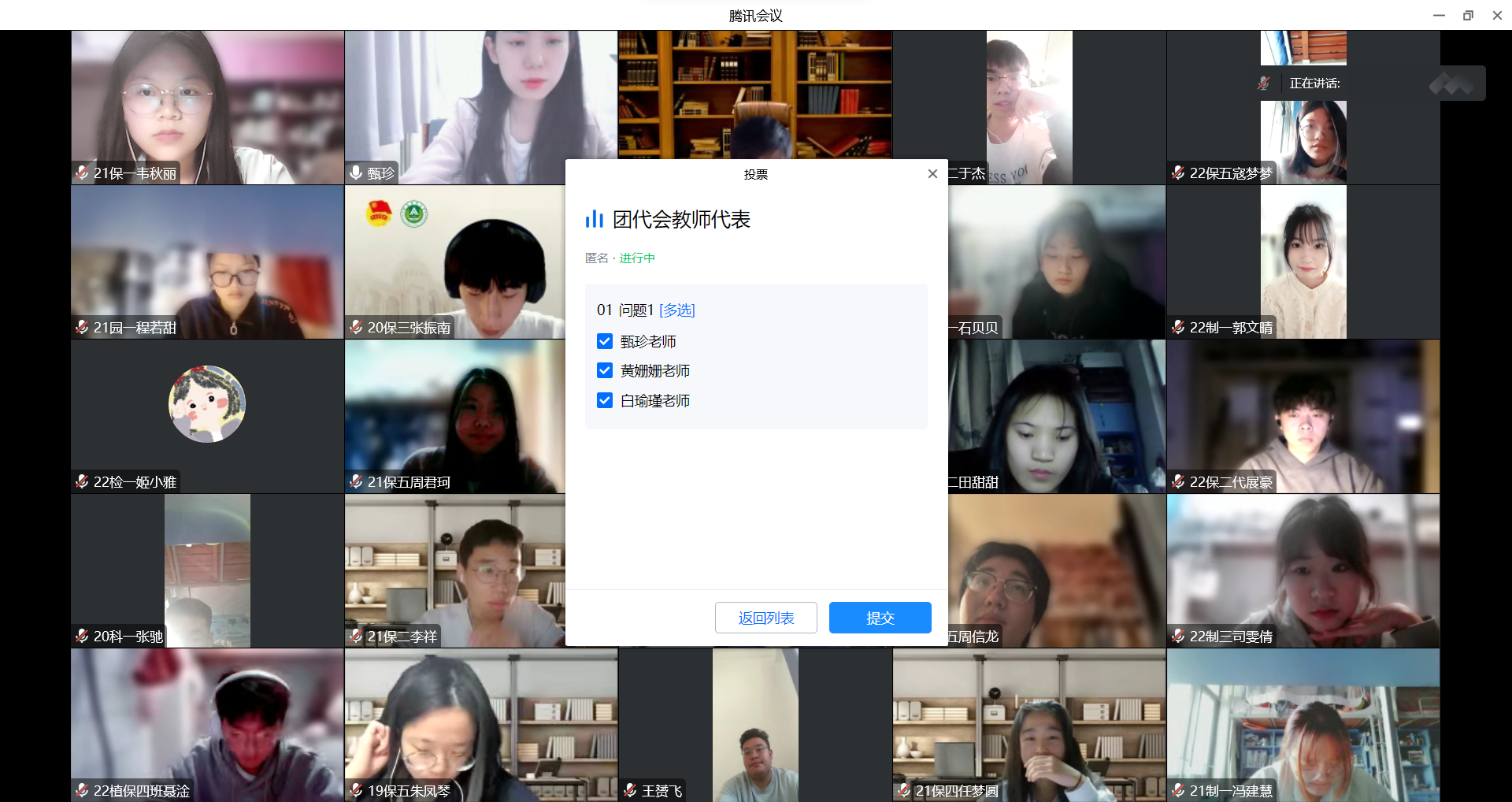 团代会代表选举工作线上召开。会议由团委副书记甄珍主持、团委委员、团员代表候选人及广大团员参加此次选举工作会议。