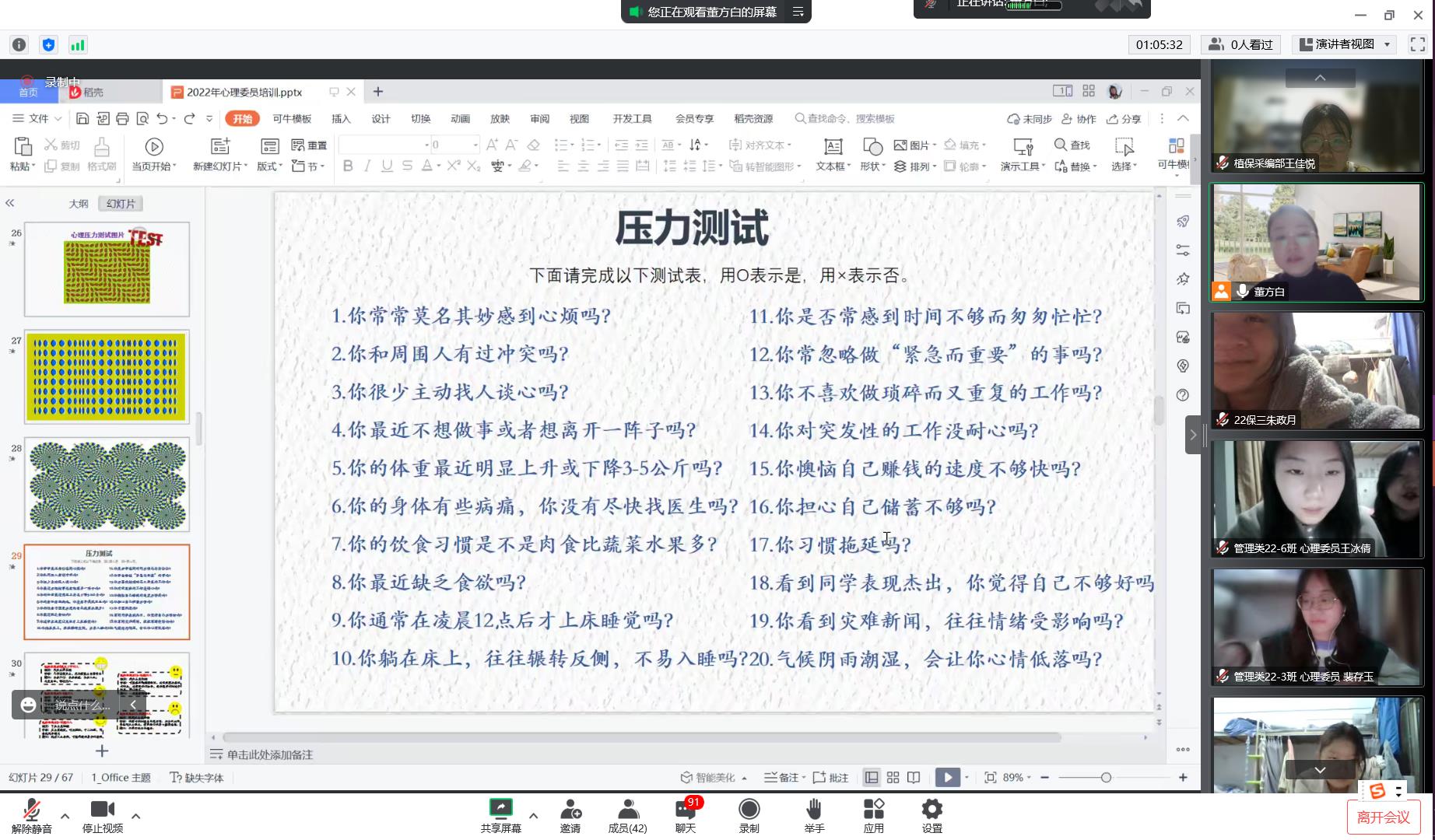 董方白老师通过心理压力测试展开互动