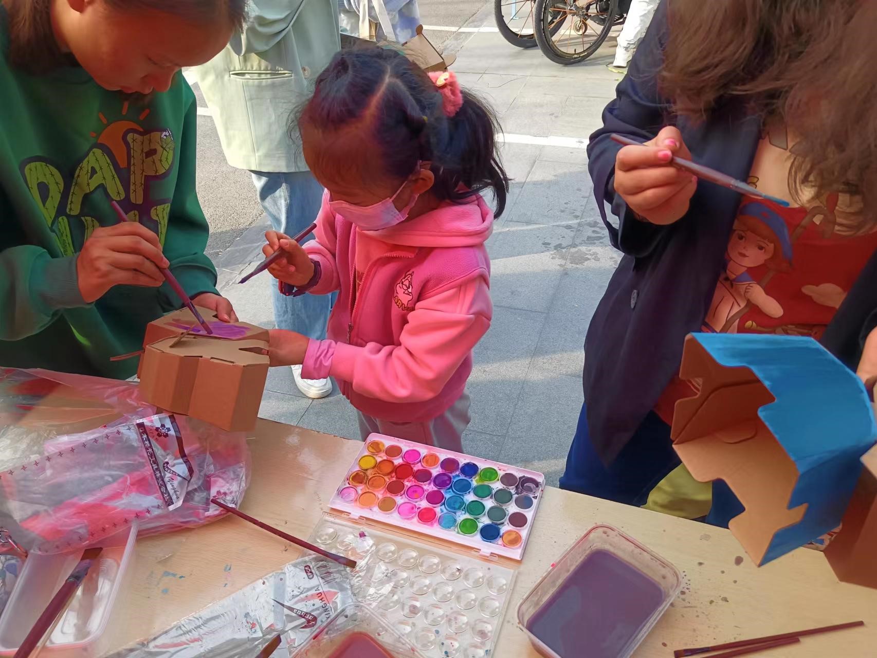 研究生于龙子湖校区一餐厅广场举办环保公益活动,通过制作“纸箱宠物”倡导资源再利用理念。党委研究生工作部教育管理办公室科长王朝杰老师、办公室张丽君老师到现场指导,院团委书记黄姗姗及研究生一百余人参加活动。