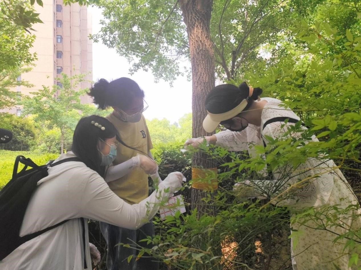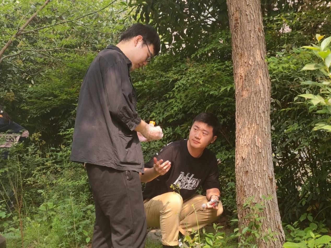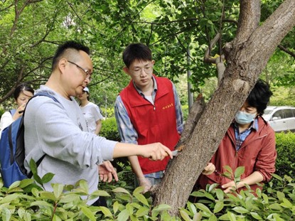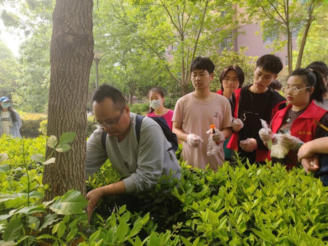 伴着明媚的阳光,迎着和煦的春风,同学们以小组为单位,开始了一天的实习。高飞、谢桂英两位老师亲自为同学们演示了防治天牛实验和防治流胶实验的操作过程,指导学生动手操作。学生们认真聆听,深入探索,并与老师积极互动、气氛融洽,收获颇多。同时,同学们从校园植物入手,就校内植物常见的病虫害防治农药使用情况开展调查,加强了对不同农药种类及使用方法的了解,进一步巩固和强化对所学知识的理解和认知。