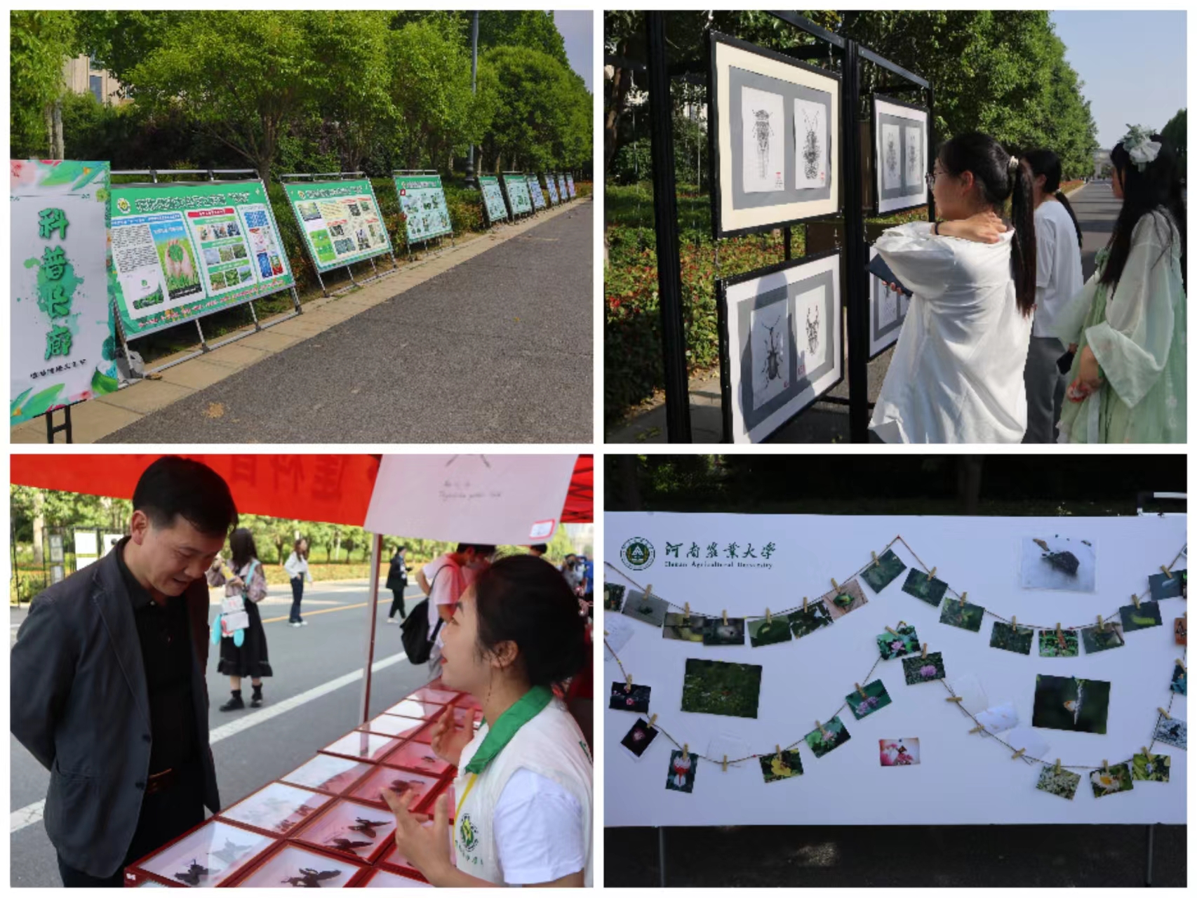 本次植物健康文化节活动设有五个展示区,分别为科普长廊、书画摄影区、游戏区、创意手工区和美食区,通过不同形式展示植物保护学科的特色和魅力。科普长廊和书画摄影区让同学们对专业知识有了更深入的了解。游戏区和创意手工DIY活动增加了整场活动的趣味性,调动了学生们的积极性。美食区的昆虫宴和昆虫茶饮让同学们真正体会到了昆虫之味,非遗糖画制作体验更是大受追捧。活动现场热闹非凡,广大师生积极参与其中。