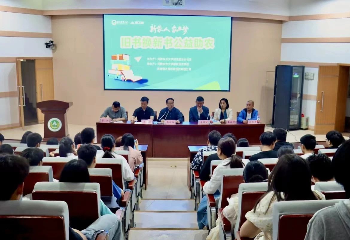 承办的“新农人·业梦 旧书换新书”活动在文化路校区举行,校、院相关单位负责人与豫之星董事长李国建一行参加活动。