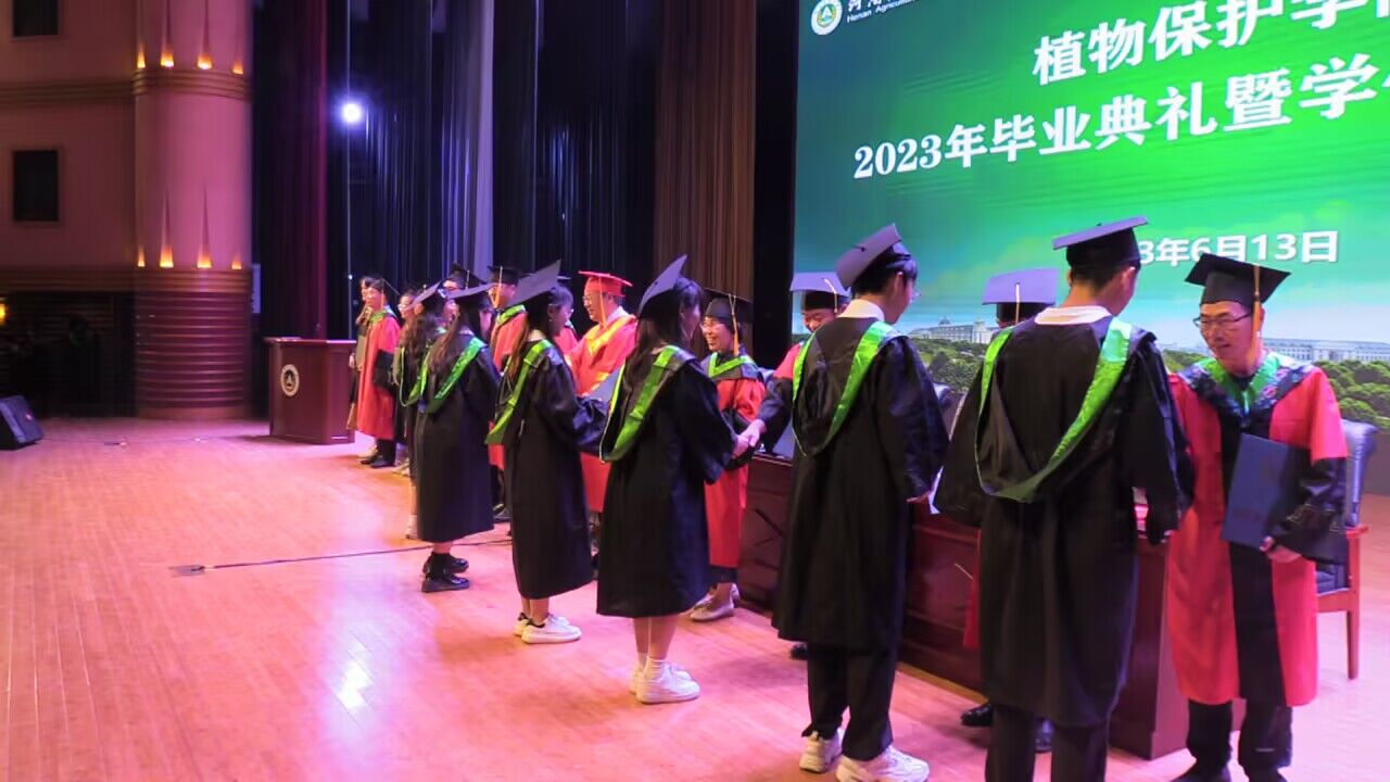 院领导、学术委员会成员为2023届为全体毕业生一一拨正流苏,颁发学位证书。