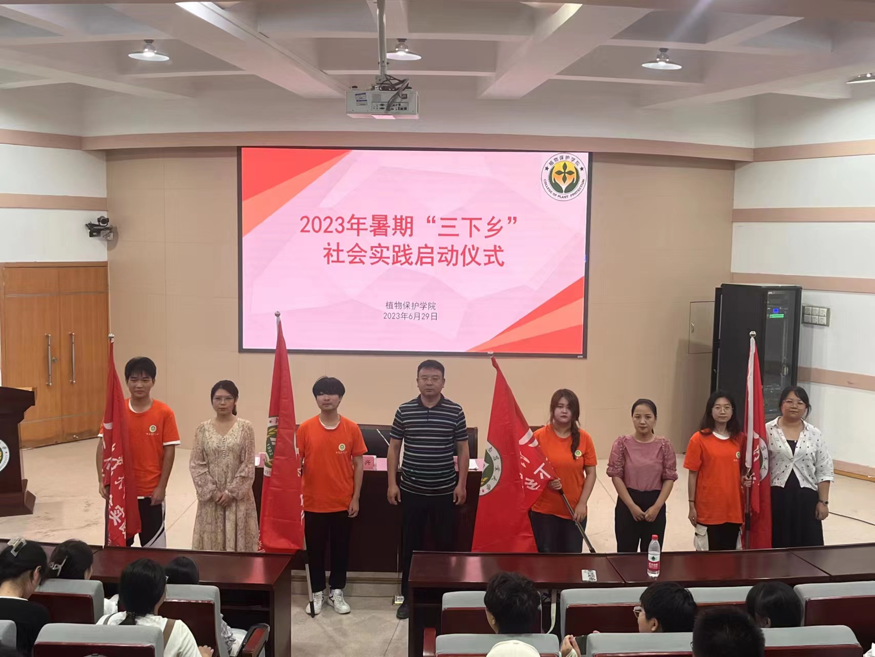 授旗仪式上,鲁兴及指导老师为2023年暑期社会实践重点队伍授旗,植保学子将继续在这个盛夏投身基层、服务社会,在生动的社会实践中受教育、长才干、作贡献、展风采。