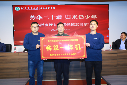 学院的蓬勃发展,离不开校友的支持,他们在各自岗位上兢兢业业,通过各种方式关心、支持和回报母校,为母校赢得了声誉、作出了无私贡献,为学校发展提供了强大动力。99级校友向学院捐赠一台会议一体机,李兴道代表学院接受捐赠并致欢迎词,向99级校友致以崇高的敬意和衷心的感谢。