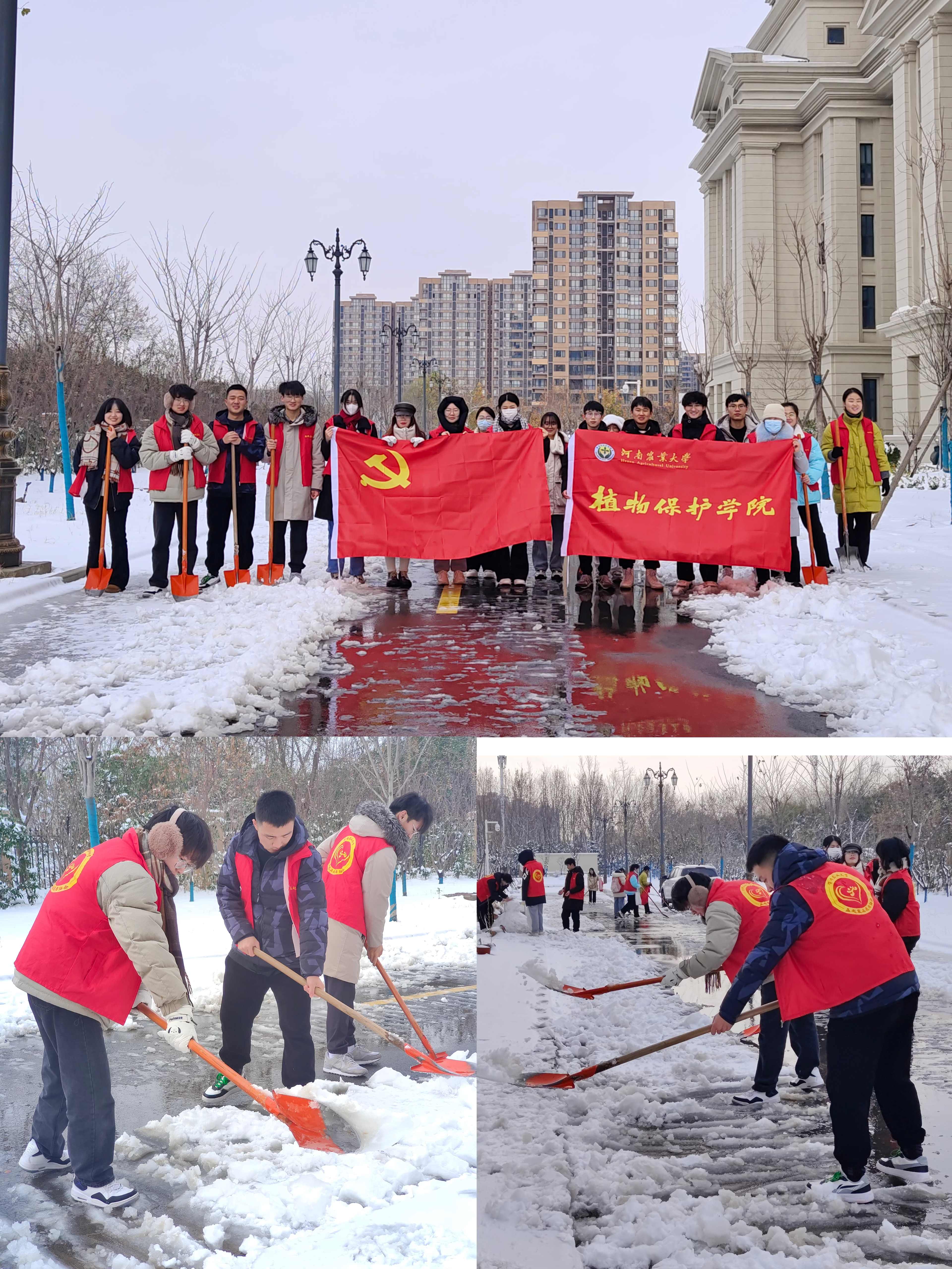 于第二实验楼西举办“我为群众办实事,清雪除冰暖人心”主题党日活动。院领导班子成员及师生党员志愿者参加扫雪活动。