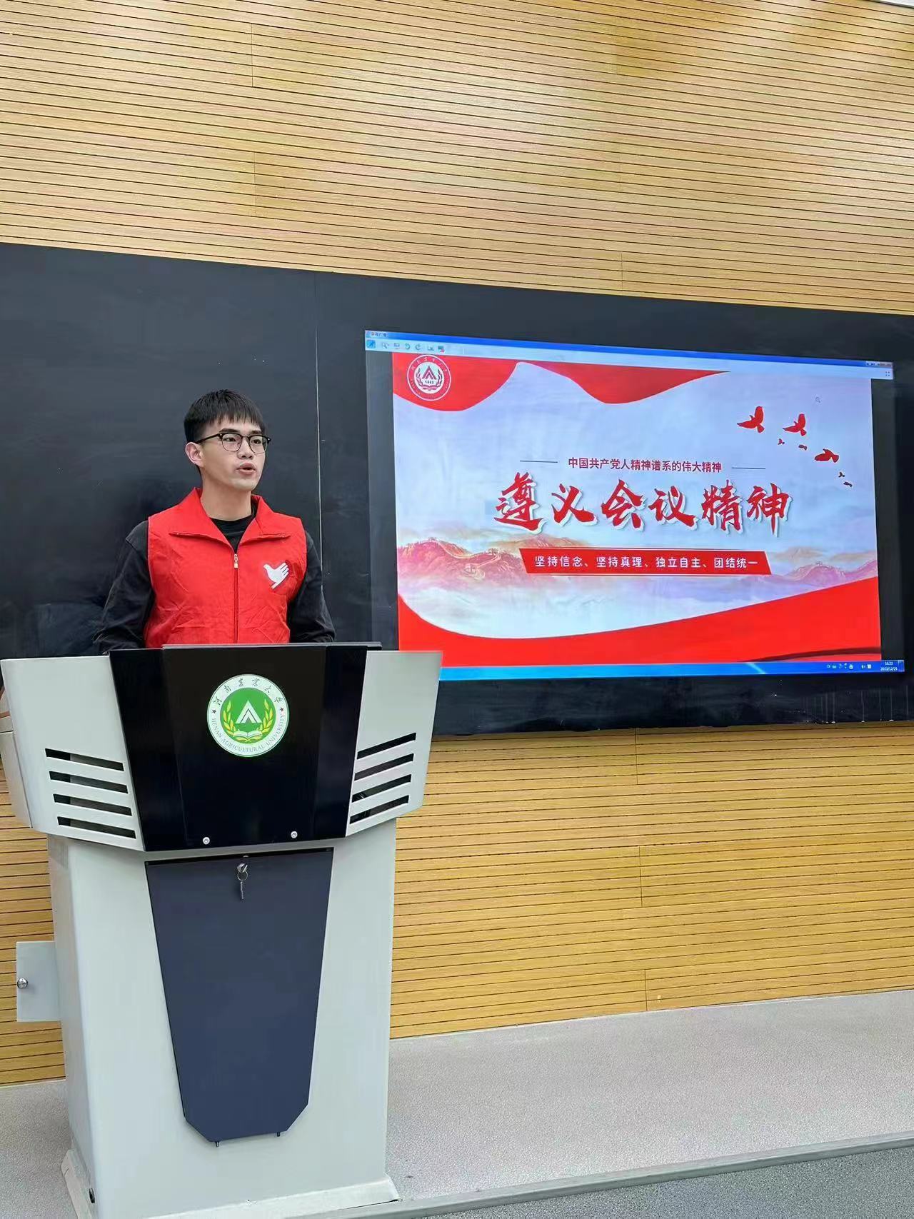 活动特别邀请了校内“薪火志愿宣讲团”的成员,他们以饱满的热情和生动的语言,向同学们深情讲述了遵义会议的光辉历程。宣讲团成员从历史背景、会议经过、深远影响等多个角度,全面解读了遵义会议在中国革命史上的重要地位。同学们全神贯注地聆听,深刻感受到了革命先烈们英勇无畏、舍生取义的崇高品质。在当代中国,遵义会议作为党史中的重要篇章,其精神贯穿着革命传统与当代青年育人的红色脉络。这次活动不仅是对遵义会议历史意义的回顾,更是对如何在新时代传承和发扬这一精神的深思熟虑。
