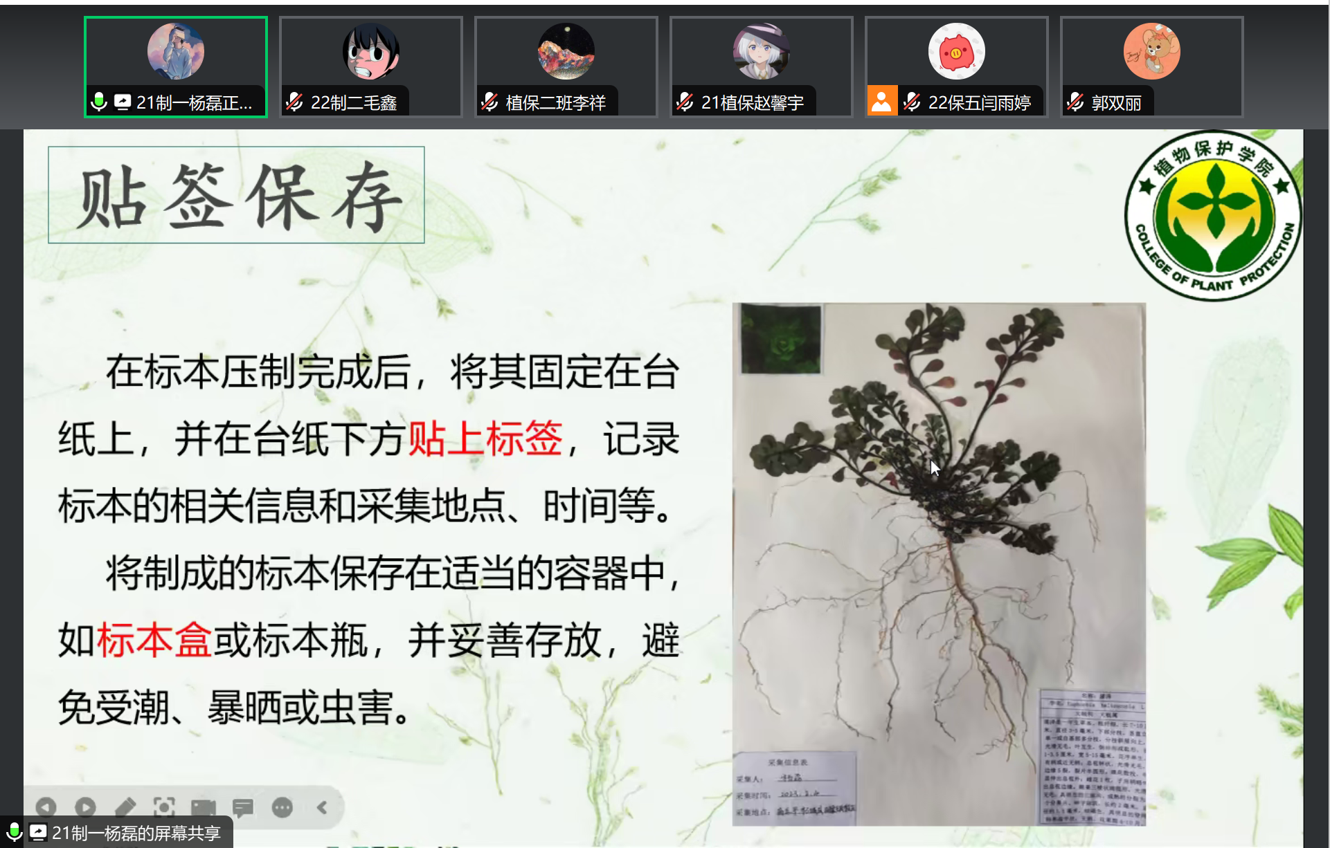 培训会上,往届优秀作品的学生代表们分别从植物标本类作品的制作、摄影类作品的拍摄思路和技巧、绘画类作品中点线图的制作、工艺品创意类作品的制作和微景观类作品的制作五个方面来分享相关作品的制作思路和参赛经验,鼓励同学们积极参与此次学科竞赛,做到细心观察,秉持创新理念,呈现出更加优秀的作品,同时巩固自身专业知识。