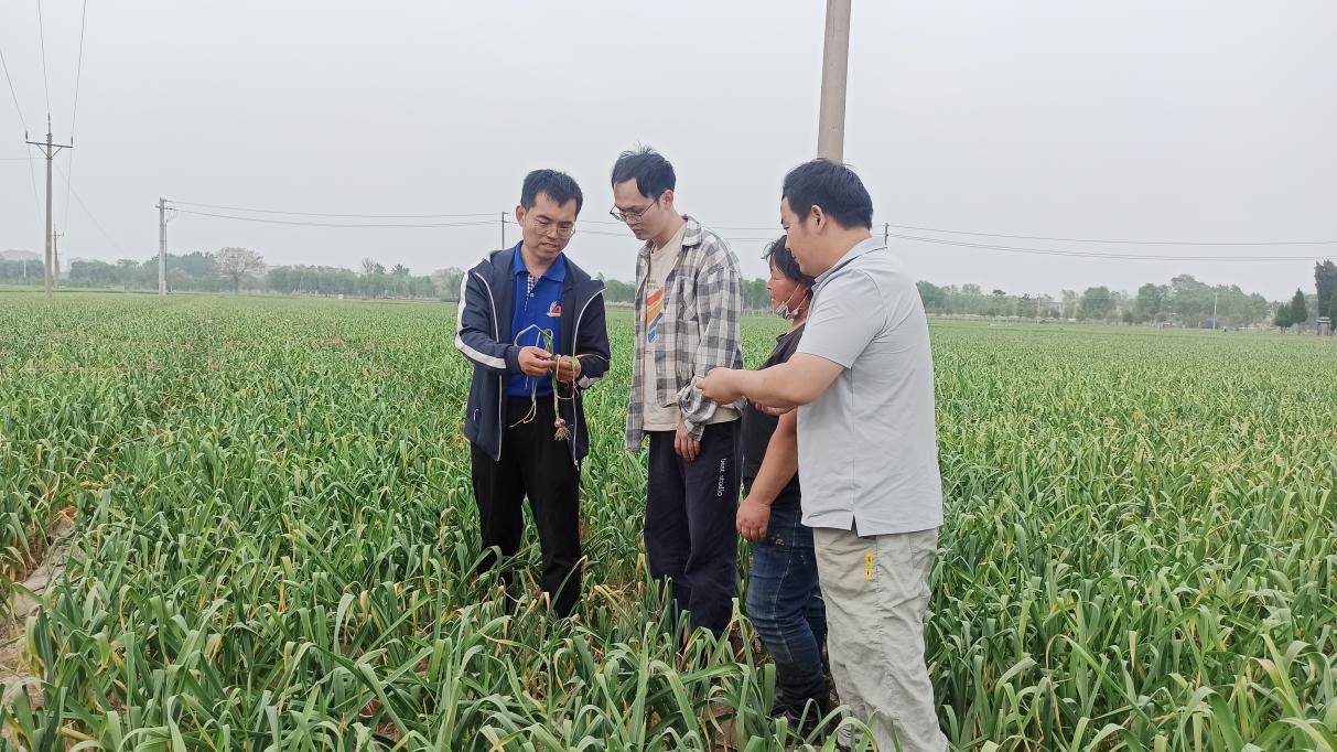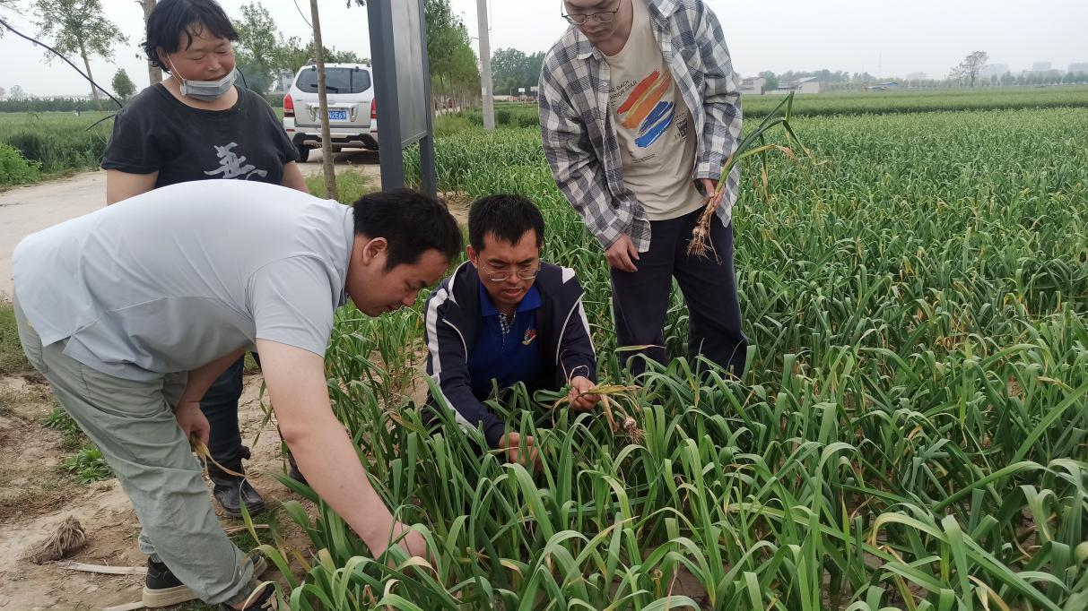 大蒜科技小院对当地的大蒜根腐病和叶斑病进行调查和防治指导。