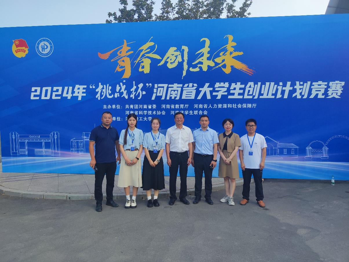 校党委副书记何松林,校团委书记贾云飞、副书记雷雯,院党委副书记鲁兴与项目团队成员竞赛现场合影
