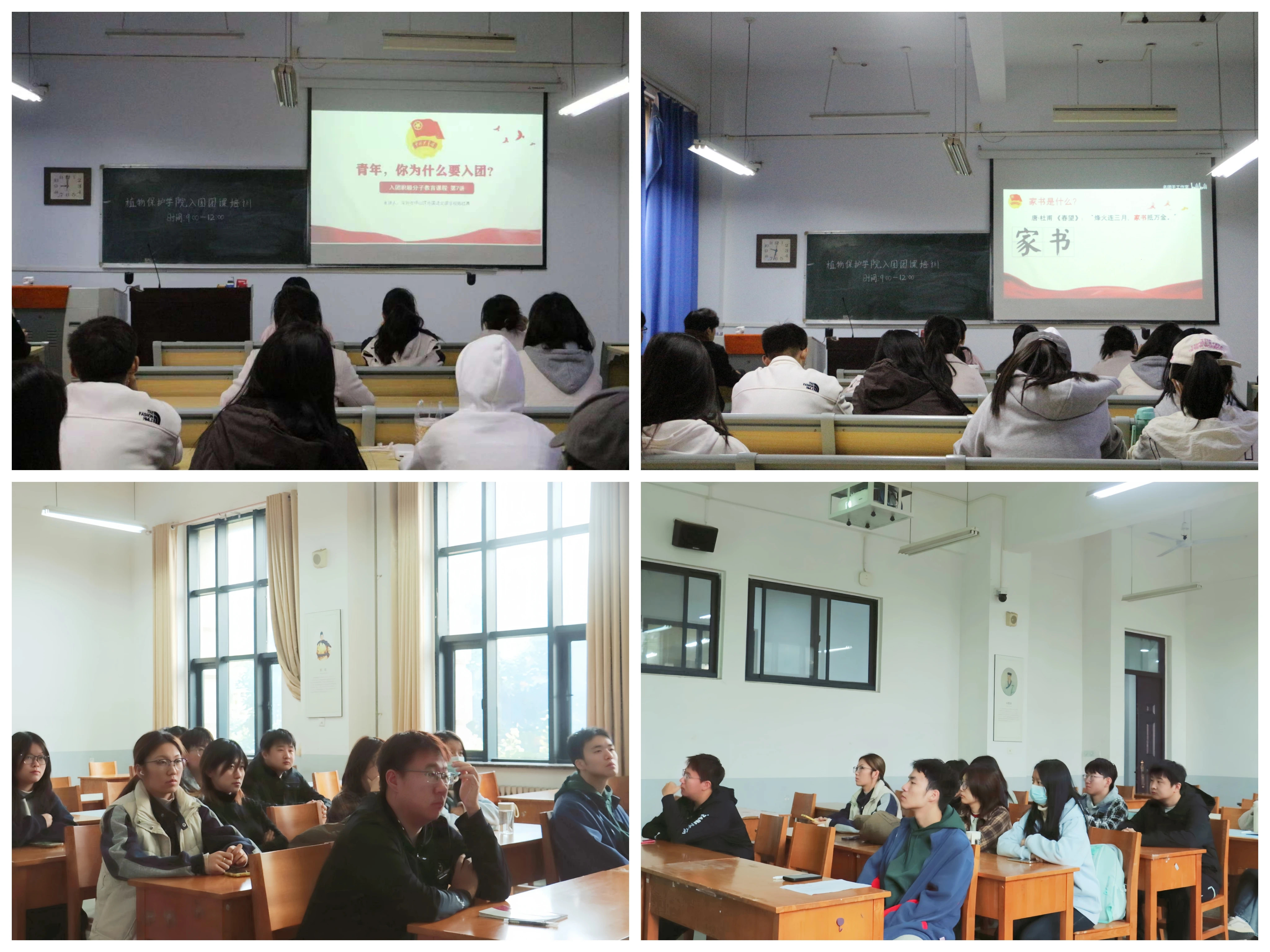团委组织部于龙子湖校区繁塔楼E110和桃李园公寓桃西楼205分别举办22级、23级以及24级入团积极分子系列团课培训会,36名入团积极分子参加会议。