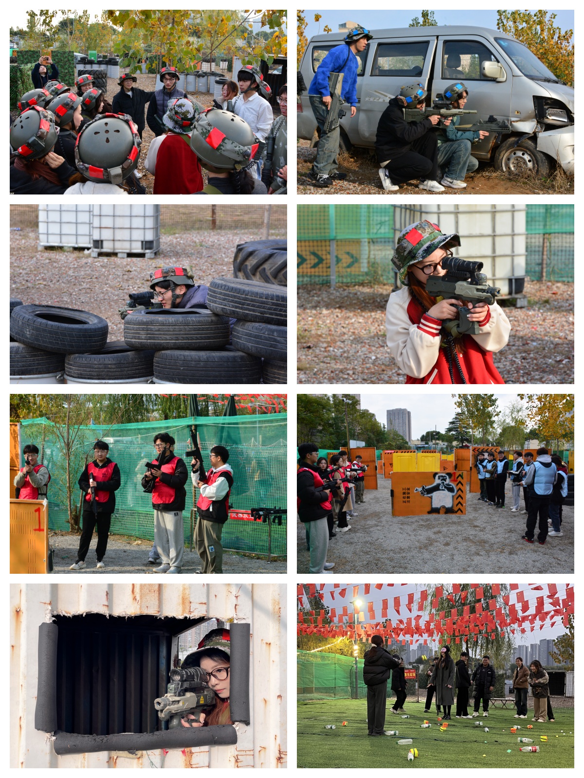 本次活动场地划分为真人CS区、趣味活动区和休息区,趣味活动涵盖真人CS、气球射击、蒙眼互打、抢球大战、拔河对抗五个模块。真人CS活动中,教官首先讲解比赛规则和安全事项,并教授各组成员正确持枪、掩护、进攻和防守等战术动作、战略要领。对抗开始,各组成员斗志昂扬,手持模拟枪械,团结协作,将策略与团队精神发挥到极致,有条不紊地执行作战计划,以敏捷的身手和独一无二的勇气穿梭在“战场”之中。趣味活动区,蒙眼互打、抢球大战等项目也精彩纷呈,活动现场欢声笑语,洋溢着活力与激情,同学们在轻松愉快的氛围中加深了彼此的友谊。