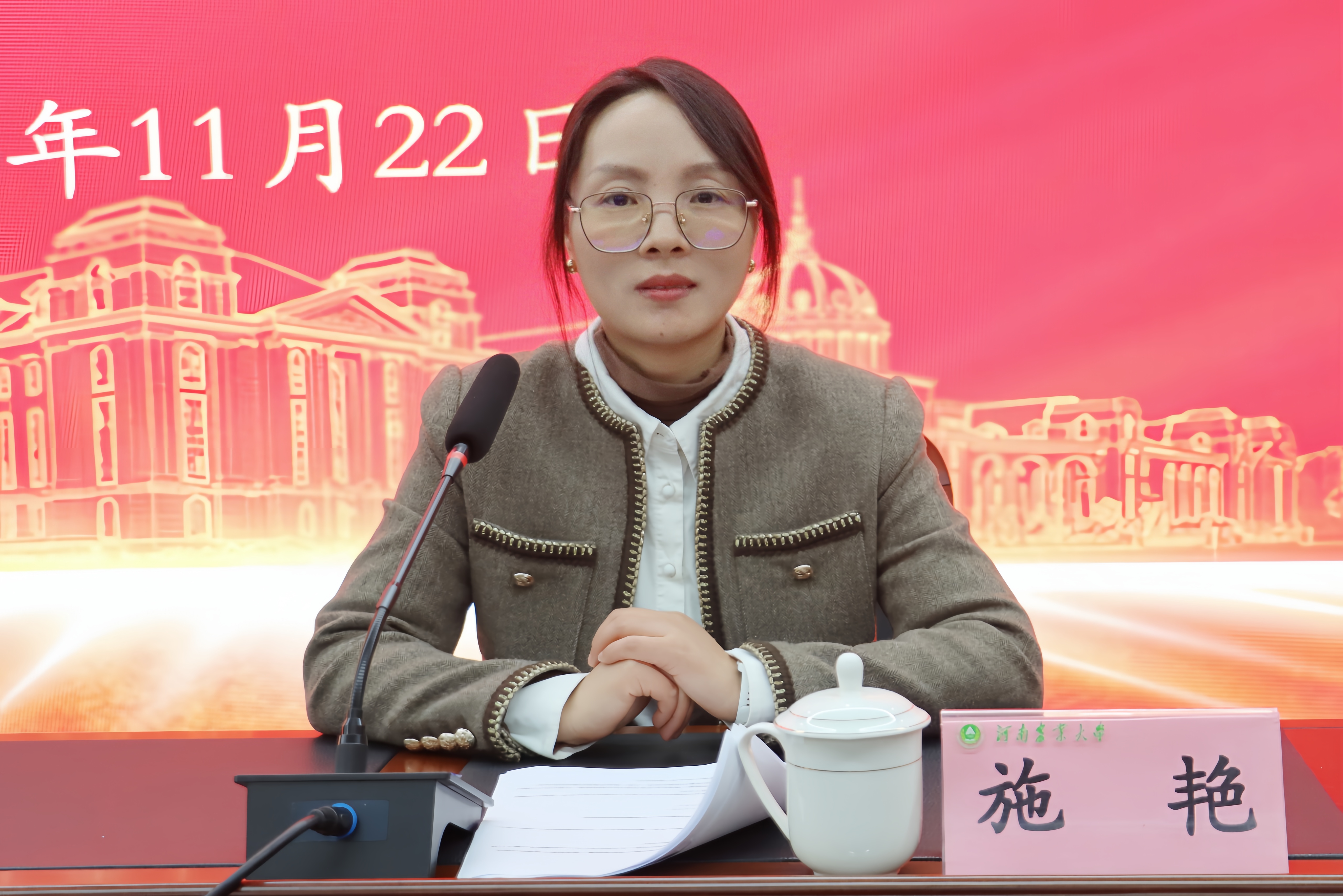 翟卿老师作为第二届教学督导发言。她指出教学督导是保障学院教学质量、推动教学改革的重要力量,希望各位教学督导切实负起责任,充分发挥专业优势,为学院的学术繁荣和教学质量提升贡献智慧和力量。