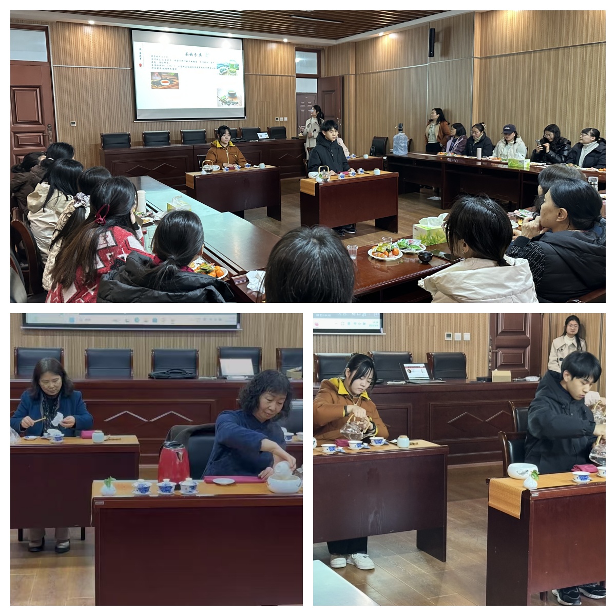 春日茶品鉴环节更是将活动气氛推向高潮。绿茶的鲜爽、红茶的醇厚、黑茶的陈香、白茶的淡雅,每一款茶都散发着独特的魅力。搭配上精致可口的茶点,女教职工们围坐在一起,轻抿香茗,畅谈生活与工作,欢声笑语回荡在报告厅内。