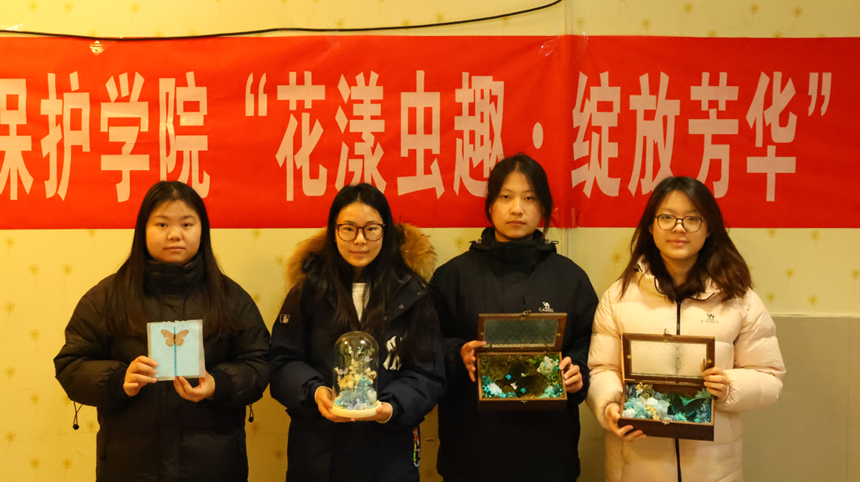活动现场摆放着各式各样制作标本的材料,有娇艳的花朵、形态各异的昆虫、缤纷的植物以及精美的蝴蝶。同学们充分发挥想象力与创造力,投入到标本制作中。他们精心挑选材料,巧妙搭配,将花艺与昆虫美妙结合,创作出极具艺术感的作品。在制作过程中,女生们相互交流,分享创意,展现出良好的团队协作精神。男生们则作为代表组成评委团,从创意、美观、技术等多个维度对标本进行认真评比。大家积极发表看法,交流心得,现场气氛热烈。