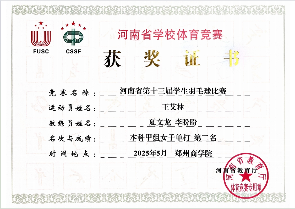 2022级学生王艾林表现亮眼,勇夺本科甲组女子单打第二名,助力学校荣获本科甲组女子团体第六名。