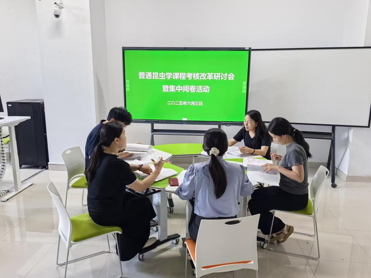 普通昆虫学教学团队开展课程考核改革研讨暨集中阅卷活动。团队成员参加会议,会议由课程负责人翟卿主持。
