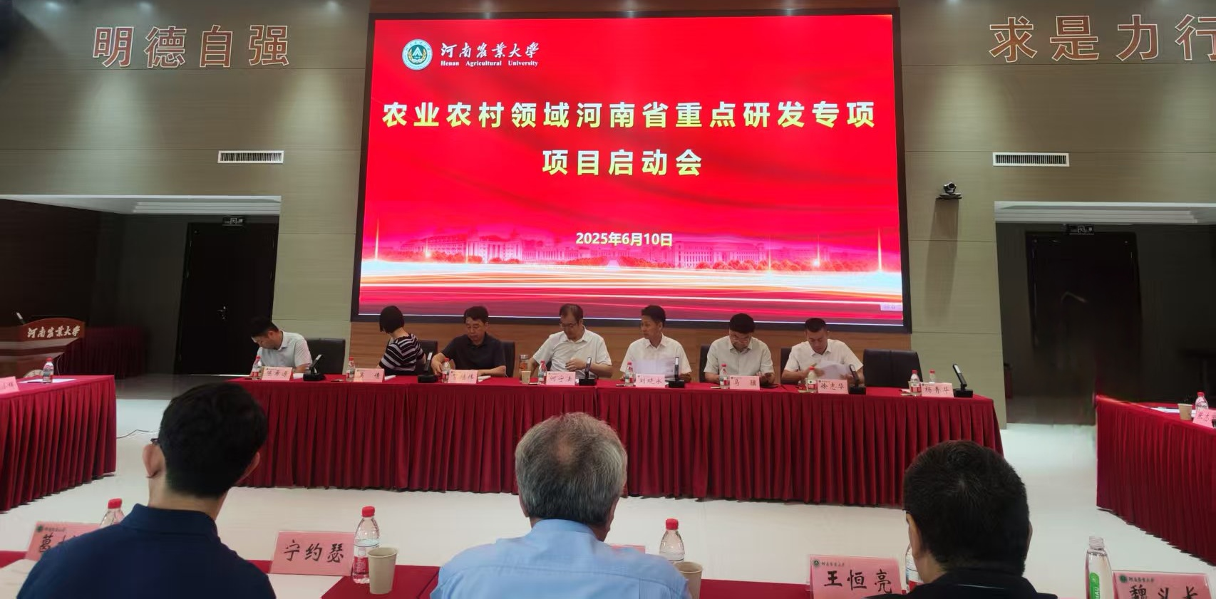 承担的2025年度农业农村领域河南省重点研发专项启动会在我校龙子湖校区行政楼隆重举行。省科技厅党组成员、副厅长何守法、机关纪委书记贺继伟、科技监督与诚信建设处处长马骥、科技项目统筹推进处副处长吴倩、现代农业农村科技处副处长徐志华、主任科员陈希源出席会议。我校副校长刘晓永、科学技术处处长杨青华、相关学院负责人,项目负责人以及团队骨干成员参加了会议,会议由徐志华主持。
