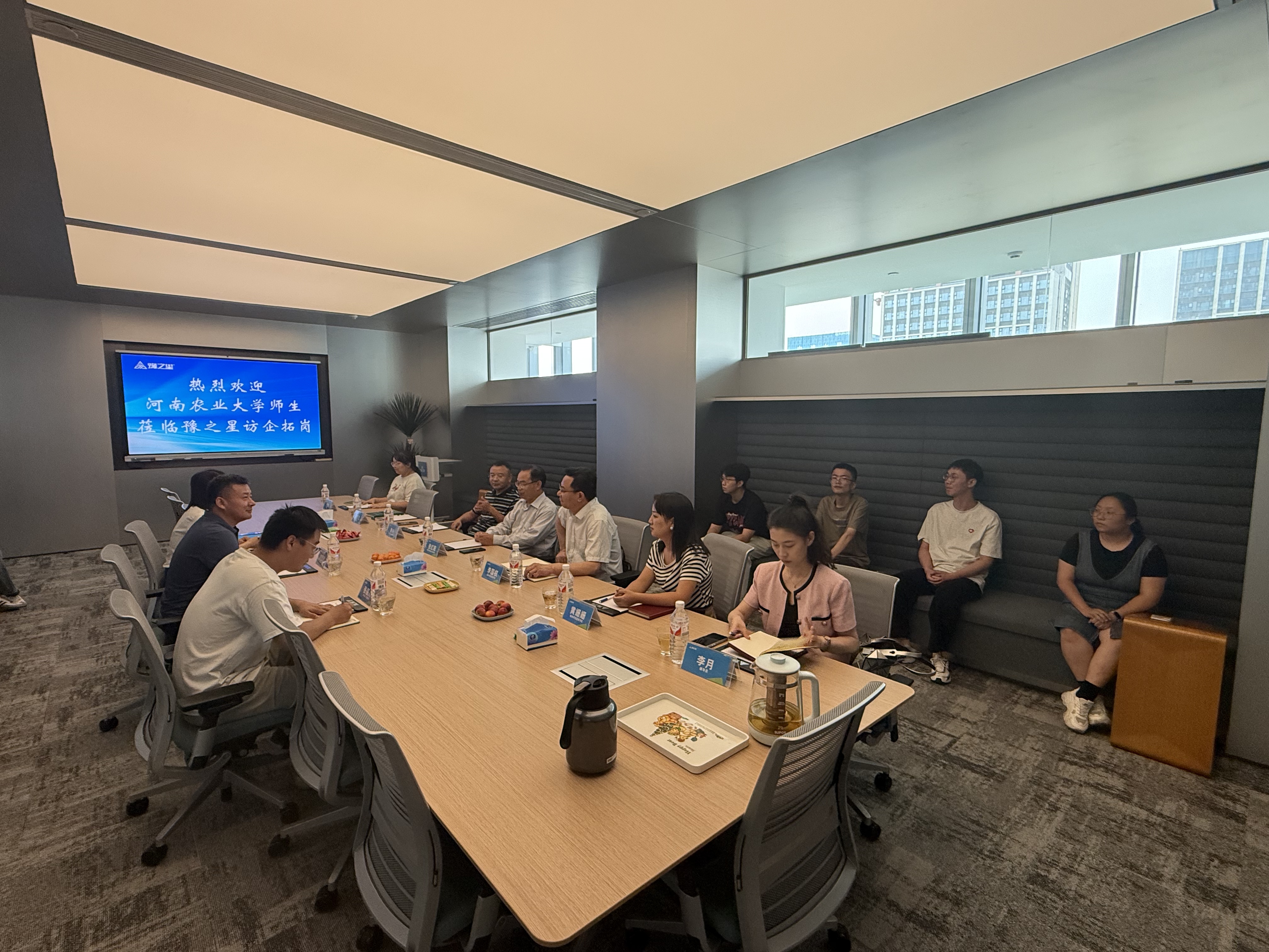 李国权就深化合作共赢提出三点建议,一是推进科技小院合作模式,学院依托植保学科组建专家团队开展病虫害绿色防控技术研发与示范推广,同时培养研究生驻点实践,提升学生应用能力;企业可以加速成果田间转化,形成“需求-研发-推广-育人”闭环体系。二是深化产教融合,联合中国农业科学院植保所通过科技攻关和科技转化,推动前沿科技成果在农业生产场景中的高效转化与应用,为企业精准输送懂技术、爱农业的高素质人才。三是邀请豫之星结合企业需求对学院学生培养工作提出建设性意见,同时期待豫之星进一步扩大校招规模,将学院纳入核心人才供应基地,实现“教学-就业-发展”的良性循环。