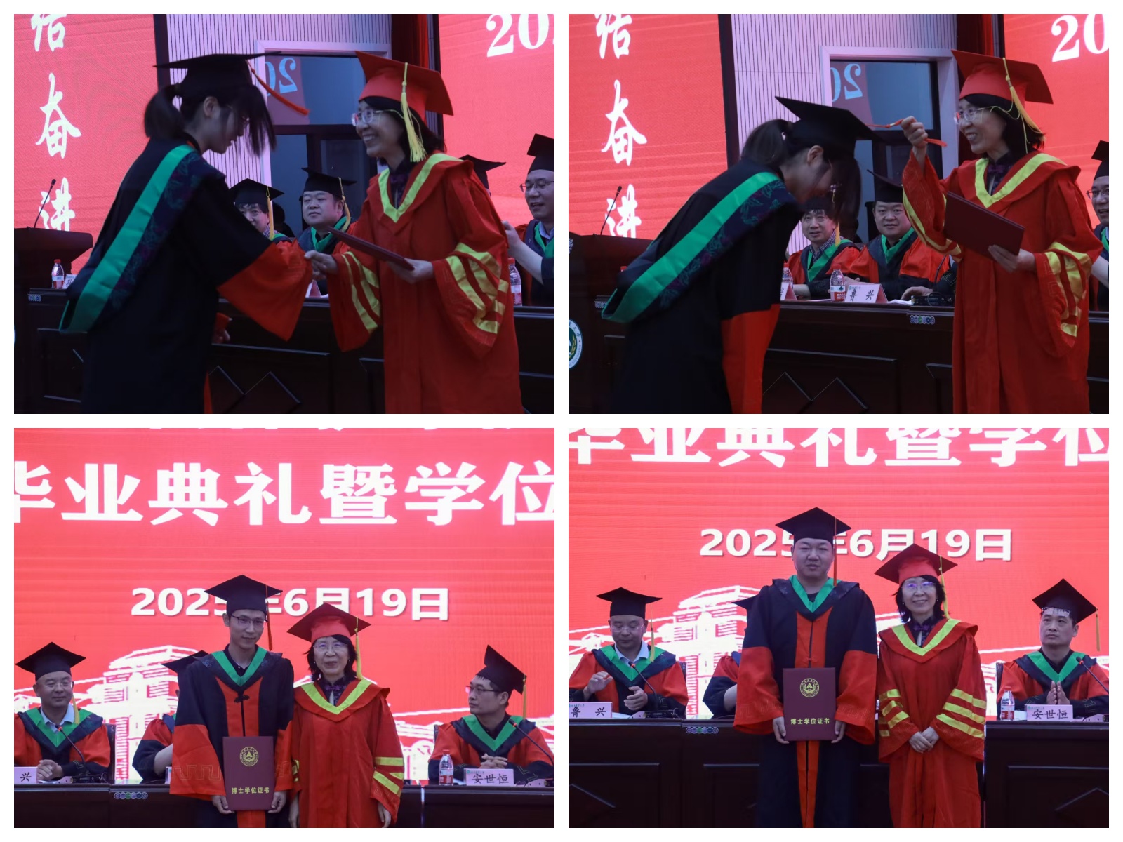 院领导、学位委员会成员为2025届优秀毕业生颁发荣誉证书,为全体毕业生一一拨正流苏,颁发学位证书。希望受表彰的毕业生志存高远,坚守初心;明德笃行,恪守底线;勇毅担当,不畏挑战,用奋斗书写人生绚丽华章。