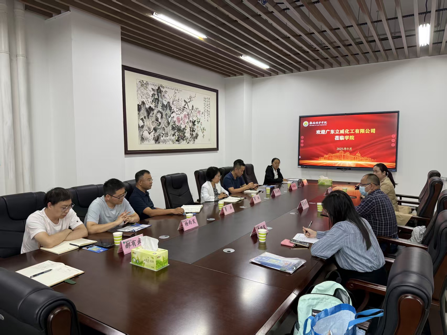 本网讯(通讯员 李晴 图片 青语大学生记者团)9月17日,学院与广东立威化工有限公司(下称“立威公司”)在209会议室就校企合作进行深度交流。立威公司营销总经理张永辉、人力资源部部长陈玲、人力资源部副部长黄晓波一行专程到访,学院院长周琳、党委副书记鲁兴、农药学系主任刘向阳及教师代表参会,双方围绕人才培养、科研合作等展开深度对话。